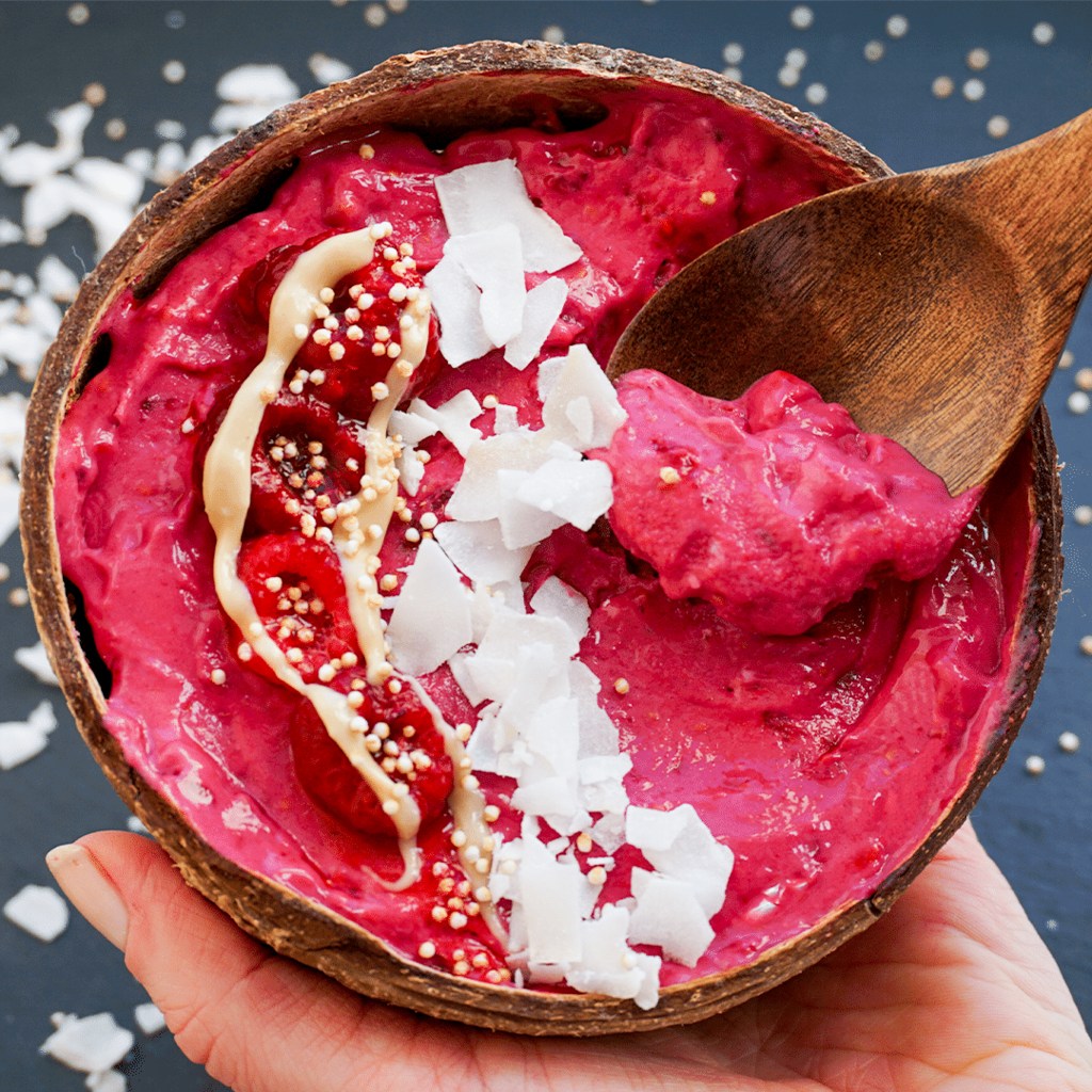 - In eine Bowl füllen und mit Toppings dekorieren.