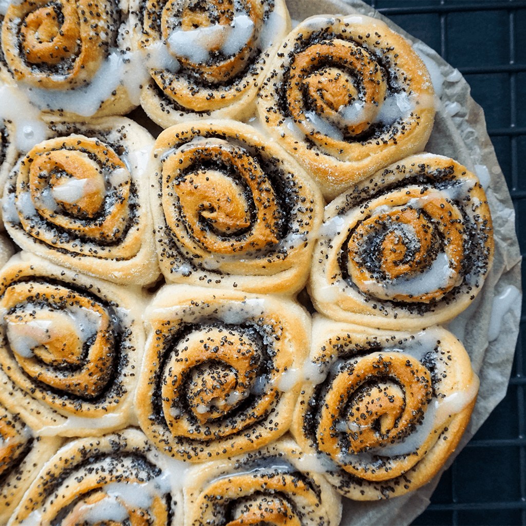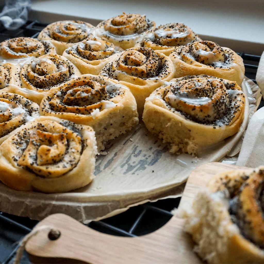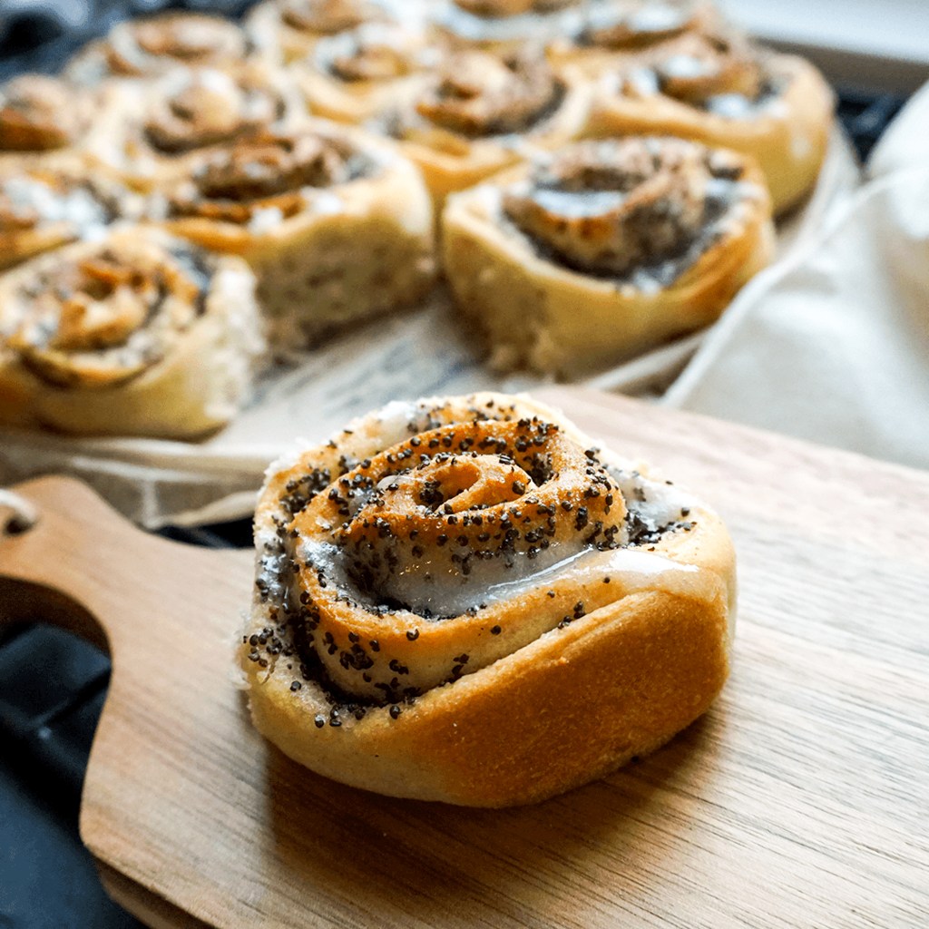 - Nun einrollen und in kleine Schnecken schneiden. Die Schnecken in eine Auflaufform geben und nochmal 30 Minuten ruhen lassen.