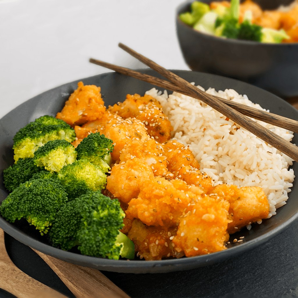 - Nun den Blumenkohl kurz in der Sauce schwenken und mit Sesam, Brokkolie und Reis servieren. Guten Appetit!