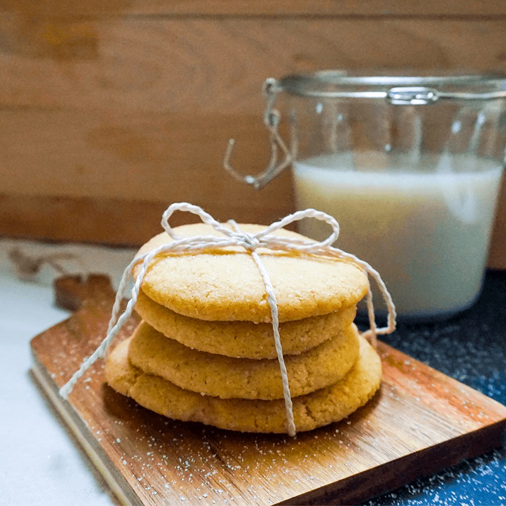 - Aus dem Teig kleine Stücke nehmen und Kekse formen. Mit der Gabel in die Oberfläche mehrfach einstechen.