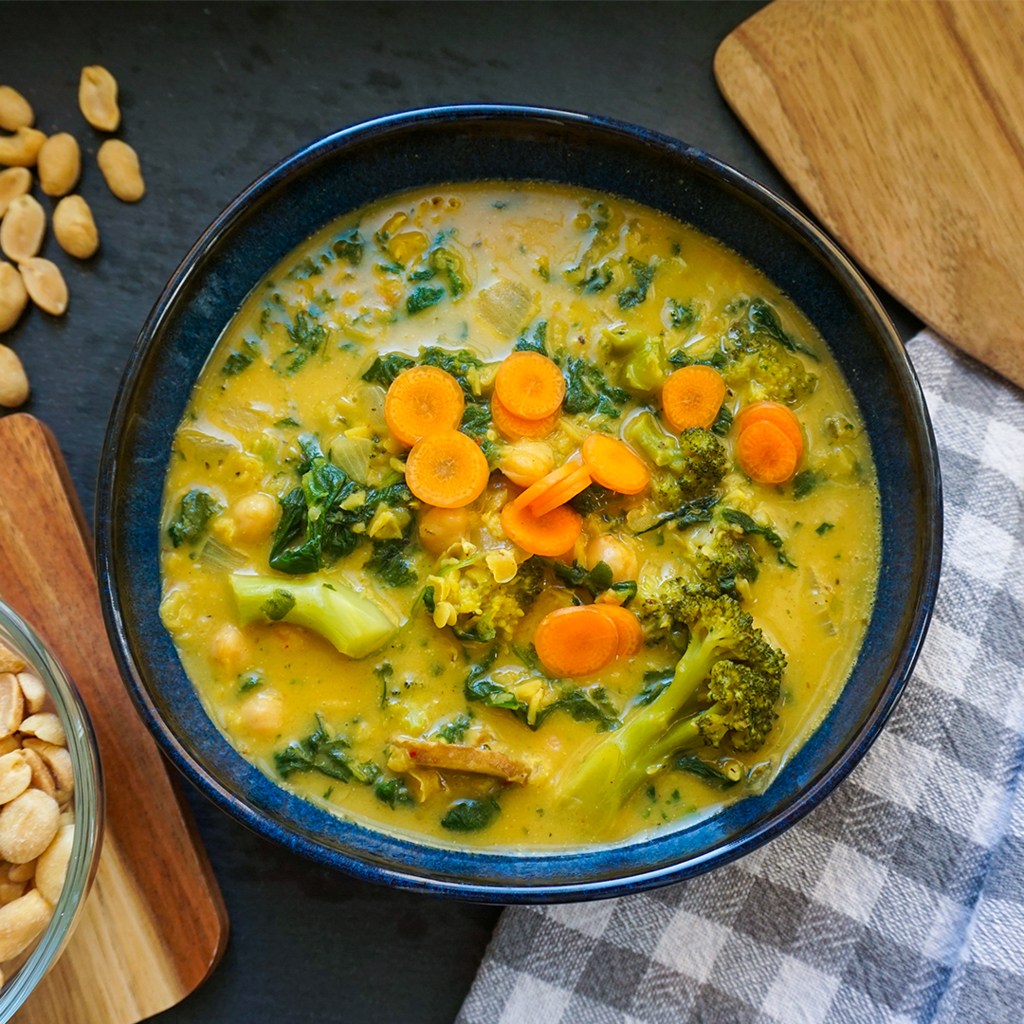 - Die Kichererbsen absieben und waschen. Anschließend mit in die Suppe geben. Den Brokkoli in mundgerechte Stücke schneiden und nochmal ca. 5 Minuten in der Suppe mitkochen.