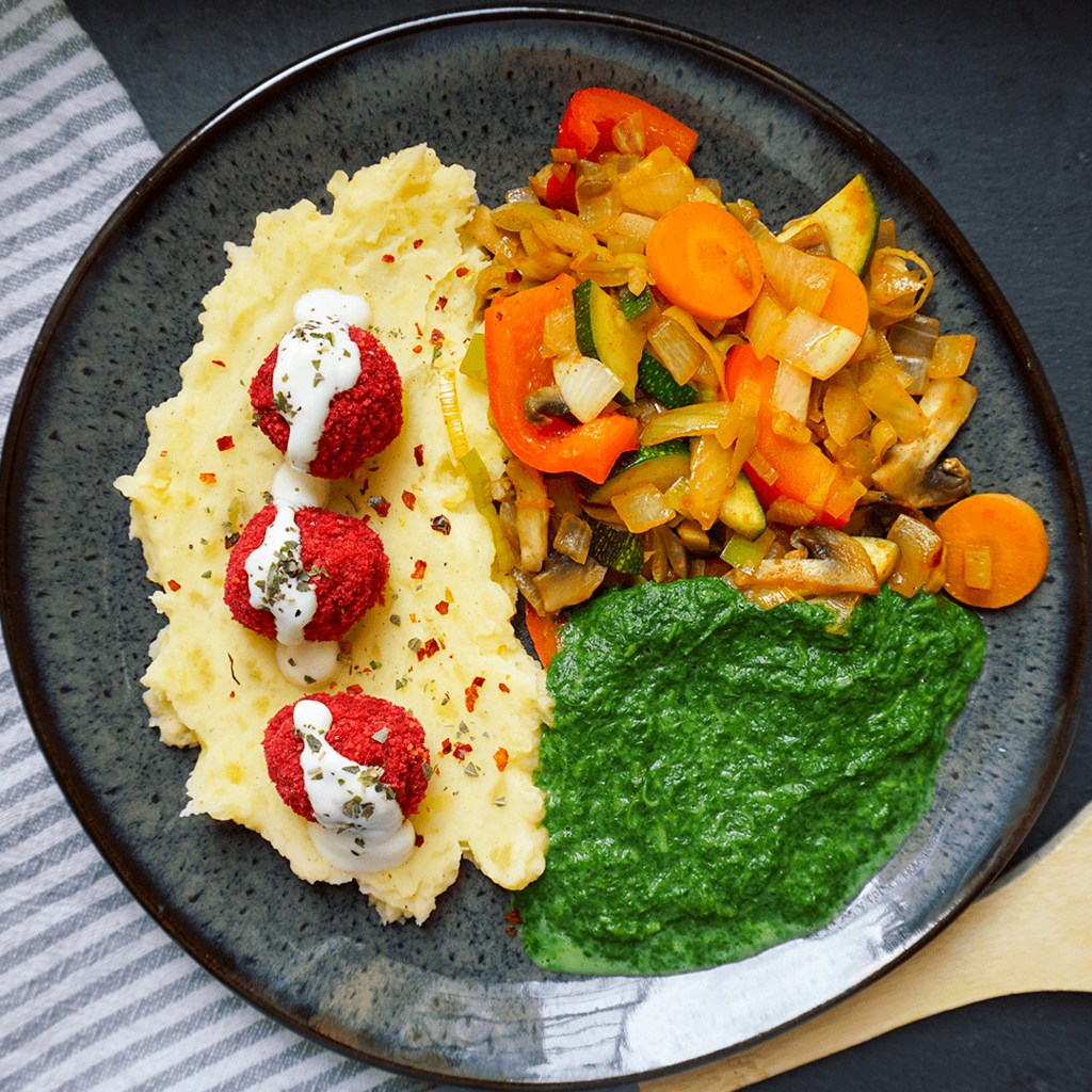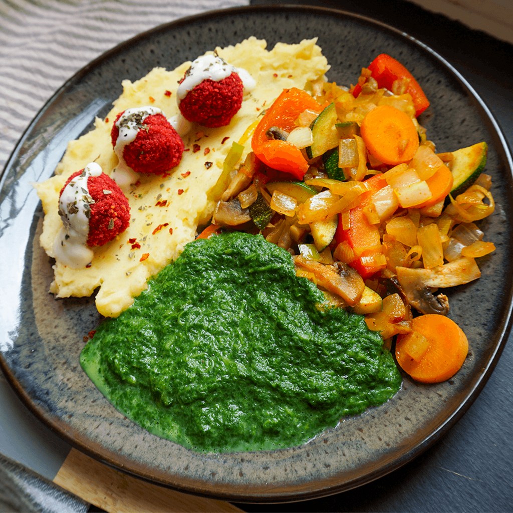 - Nun den Spinat zusammen mit der Pflanzenmilch und der Speisestärke pürieren oder in einen Mixer geben.