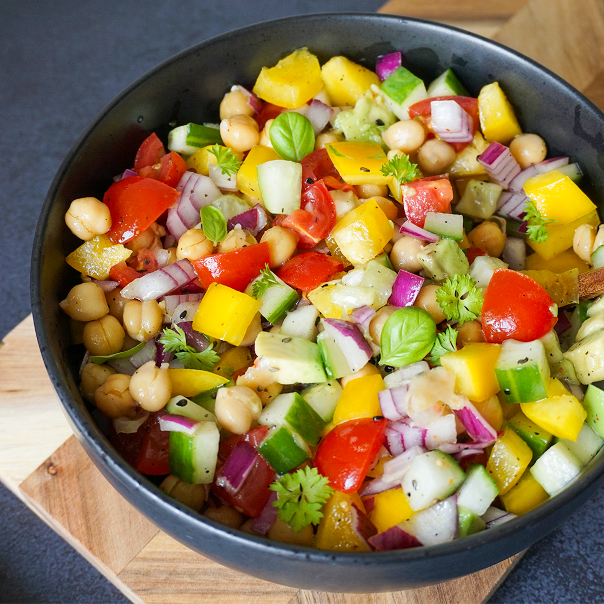 - Das Gemüse in kleine Würfel schneiden und in eine große Schüssel geben;