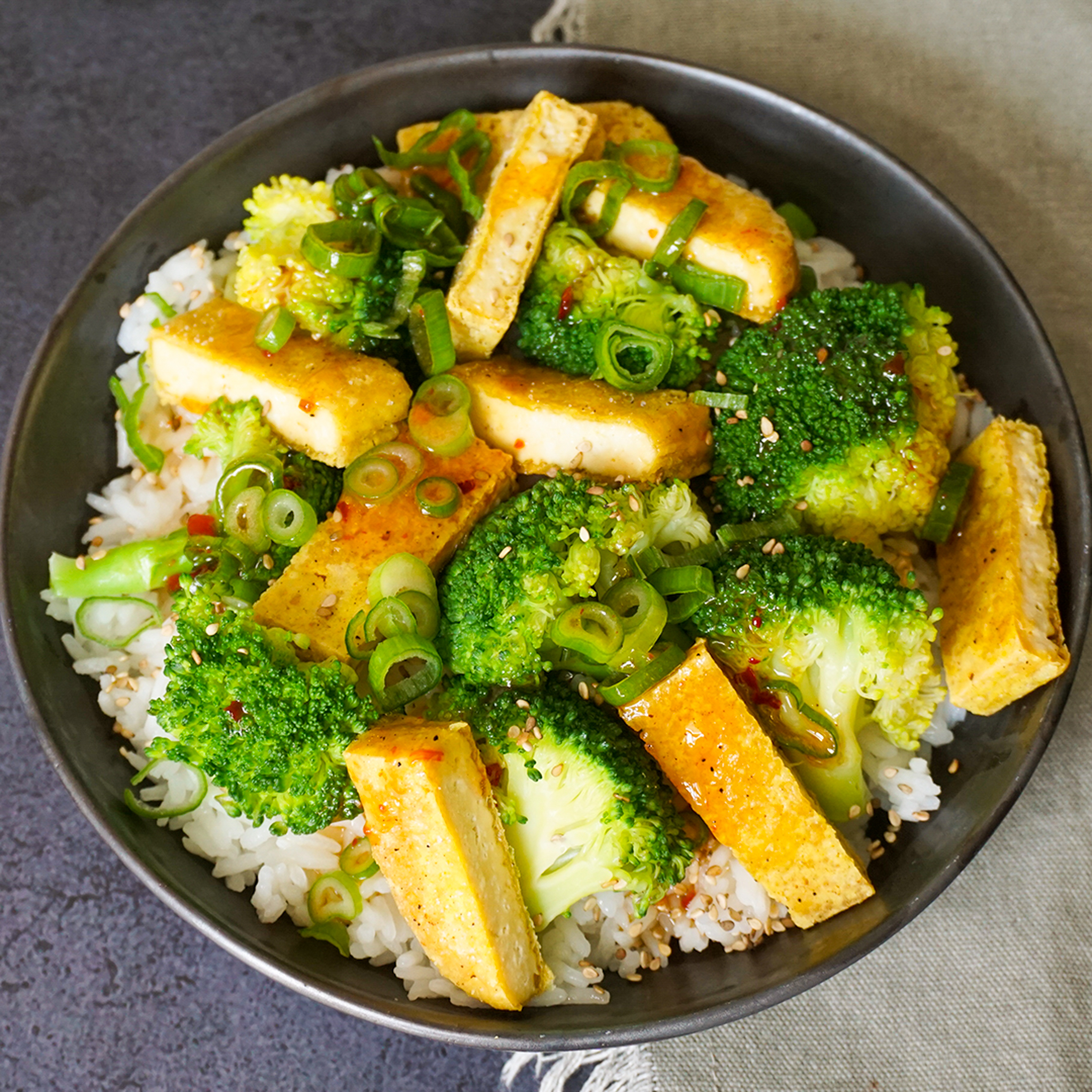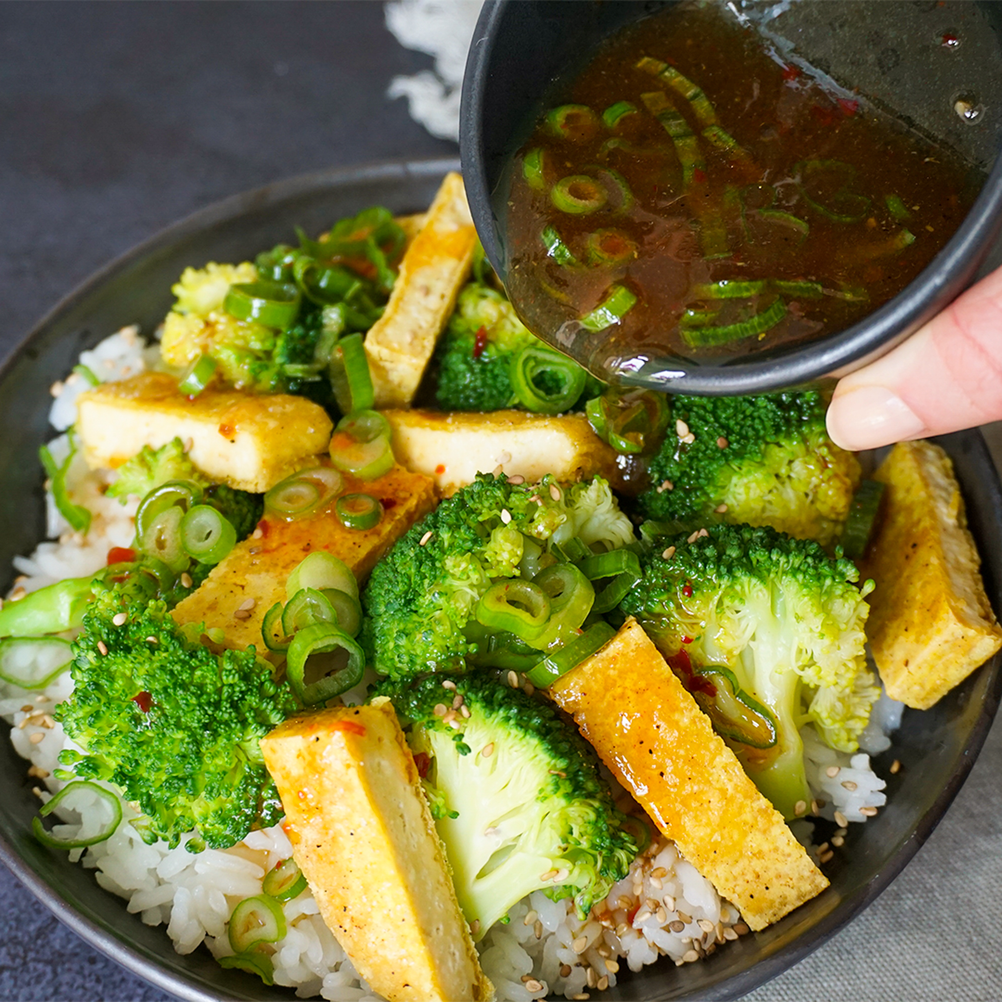 - Den Tofu-Brokkoli Salat am Besten mit Reis und Lauch servieren und das Dressing darüber gießen.