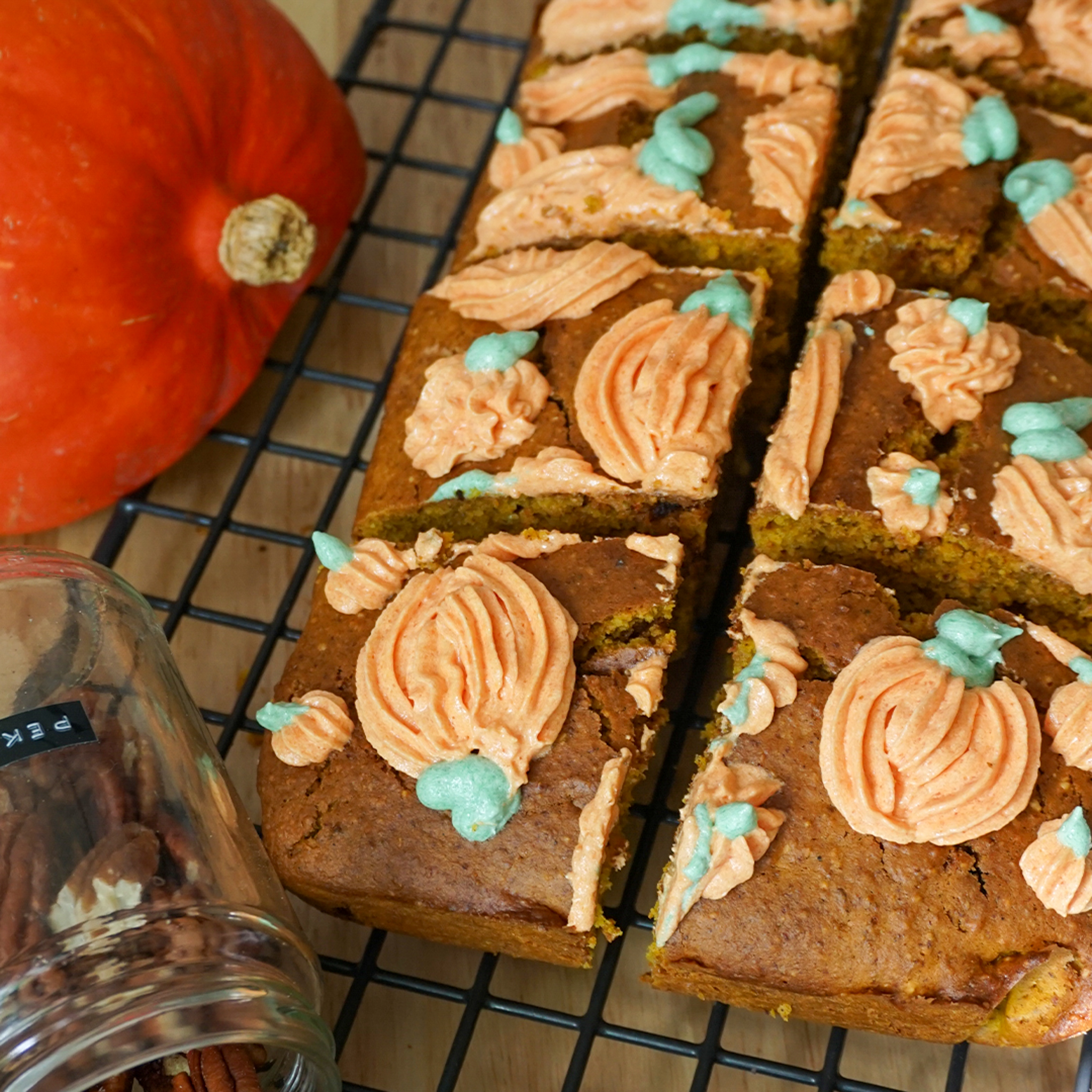 - Vollständig abkühlen lassen und mit dem Frosting wie auf dem Bild dekorieren.