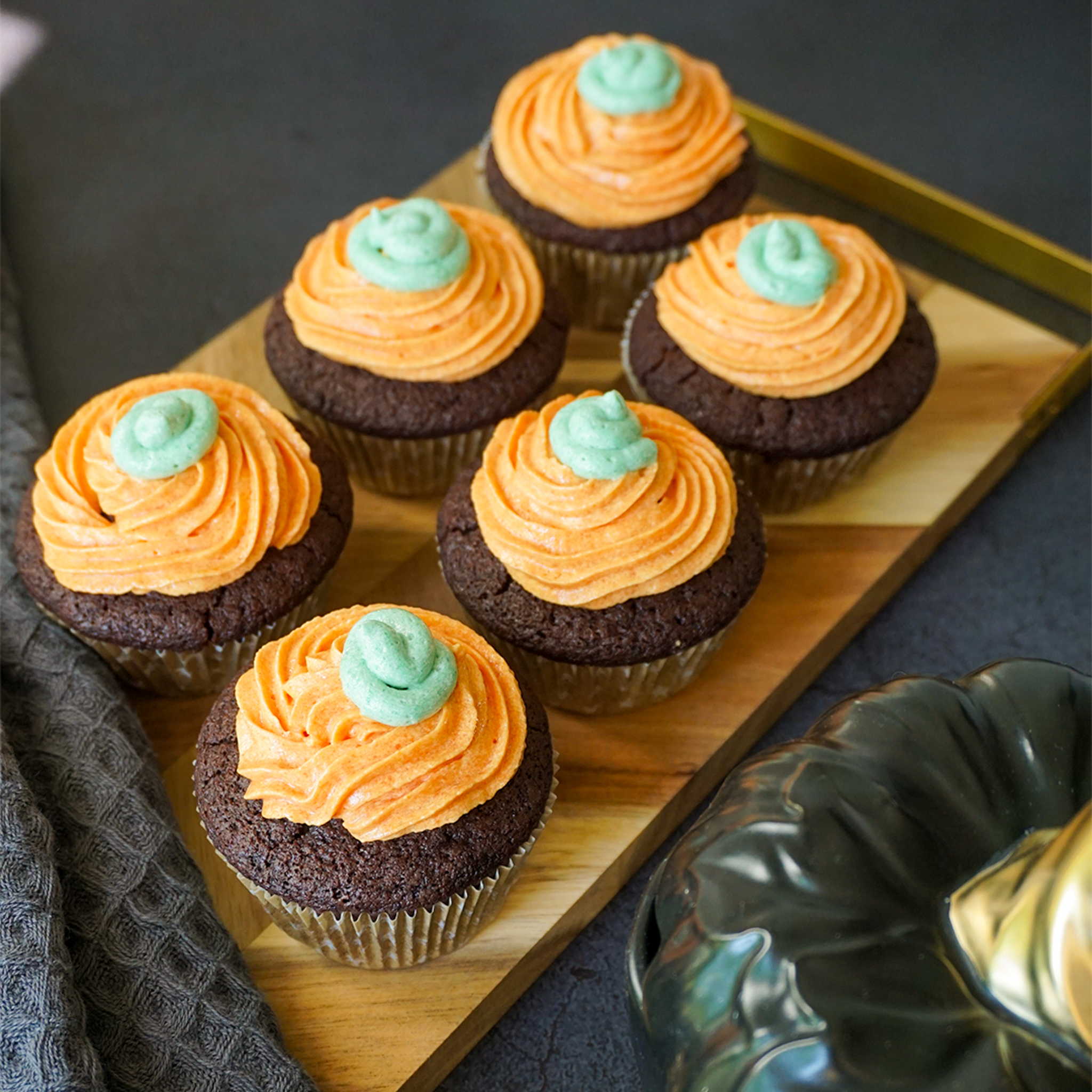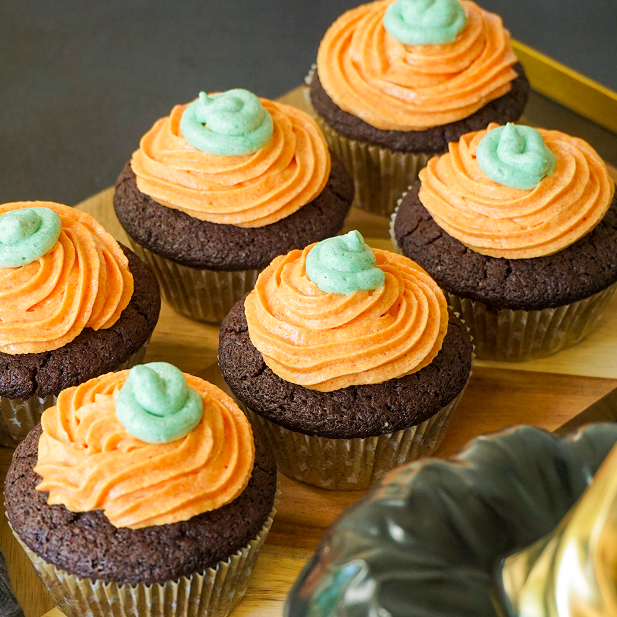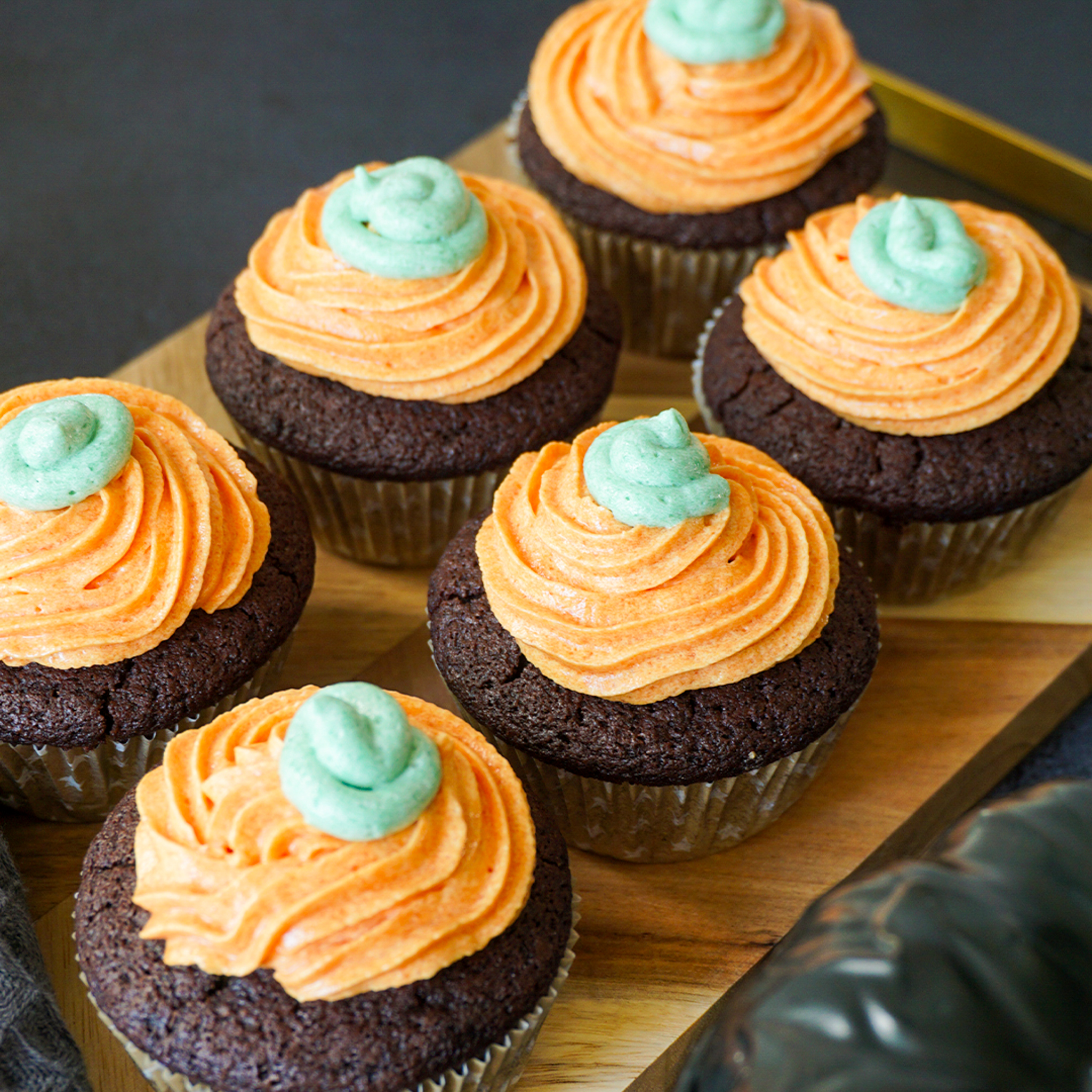 - Vollständig abkühlen lassen und mit dem Frosting wie auf dem Bild dekorieren.